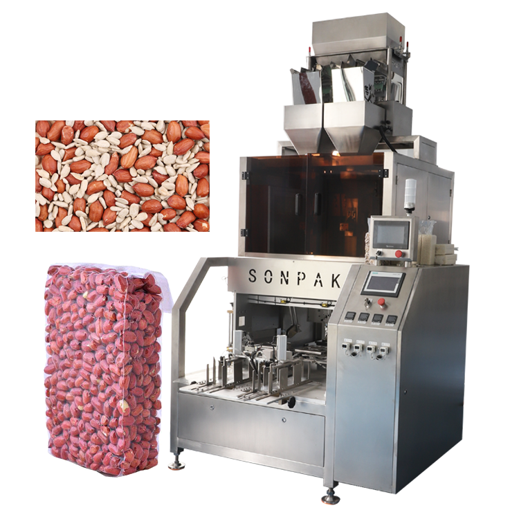適用于瓜子、花生米等形狀均勻、流動性較好的顆粒物料的真空整形包裝。全自動化,有效節(jié)約生產(chǎn)成本,能自動取袋、送袋、開袋、上袋、充填、整形抽真空、封口、成品輸出。
