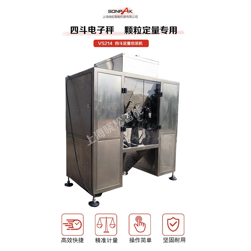/Process更多VS214四斗定量包裝機詳細報價,生產交貨周期,售后服務,使用說明請于曉松智能官網業務部聯系或致電:021-59162108